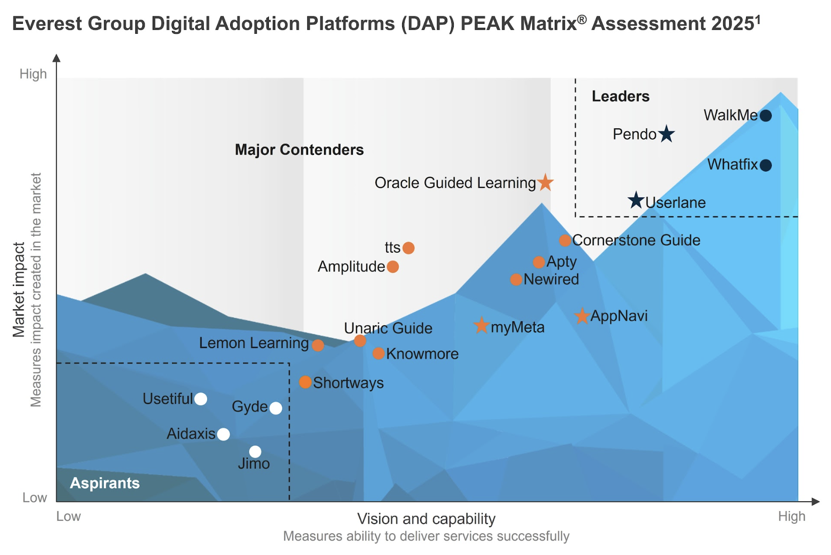 Pendo is a Leader (3 years in a row) and Star Performer (2 years in a row) in the 2025 Everest Group Digital Adoption Platforms (DAP) Products PEAK Matrix® Assessment.